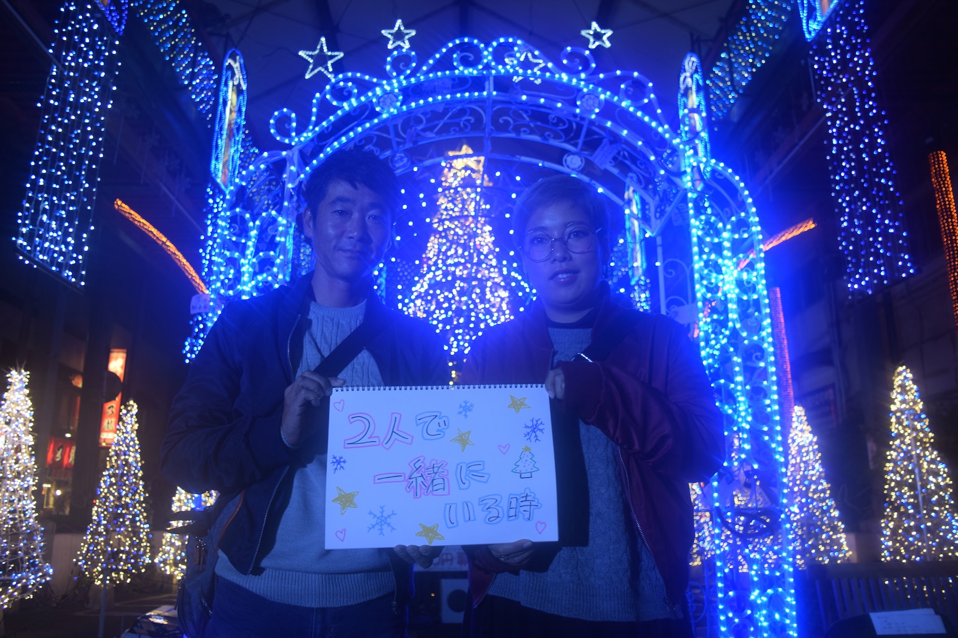 サンタクロスロードのイルミネーションをみんなに見てもらったとき♡しあわせ♡見にきてくれて、ありがとう